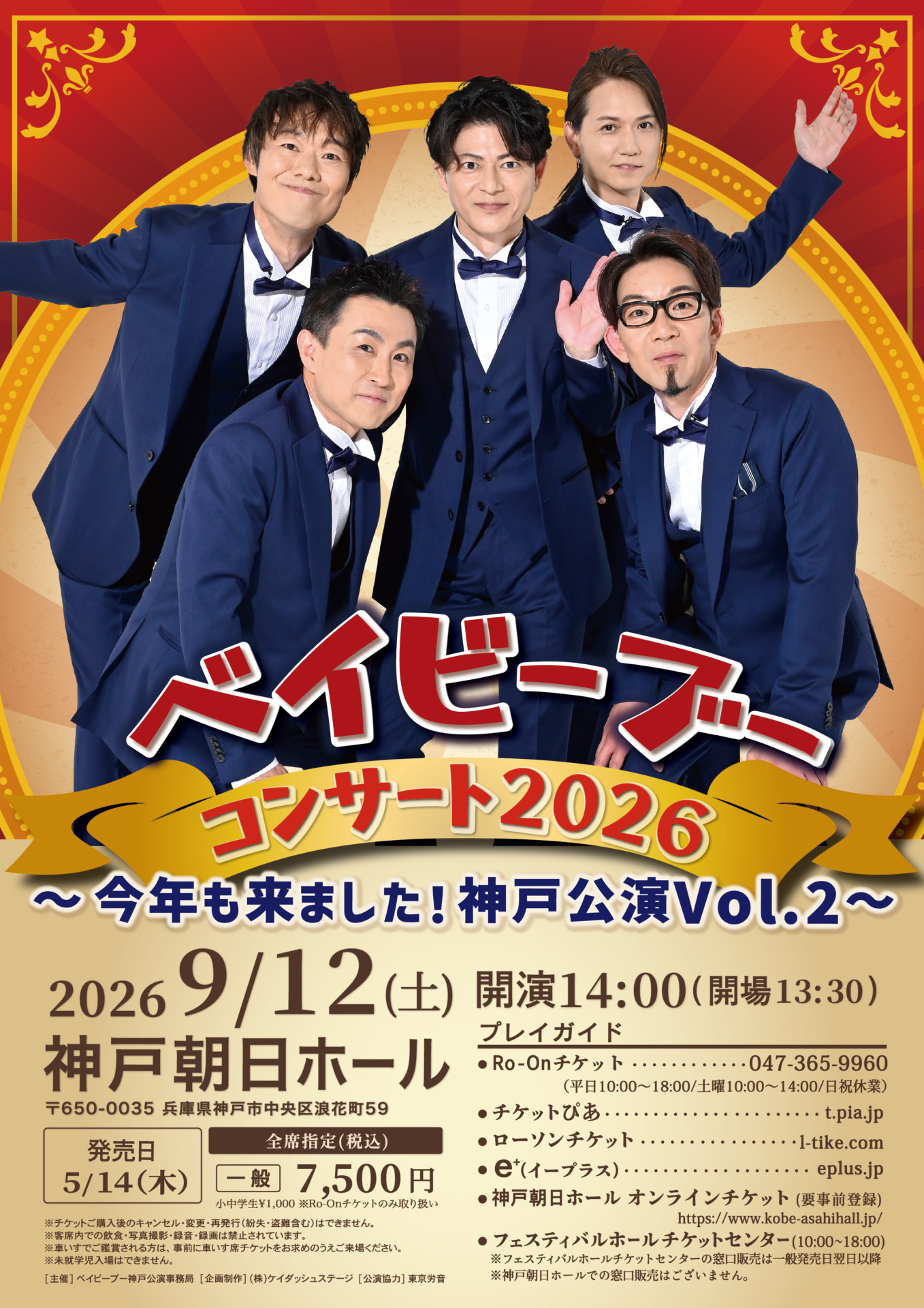 9/12(土) 14:00 開演(13:30 開場)神戸朝日ホール料金(税込)全席指定 : 7,500円