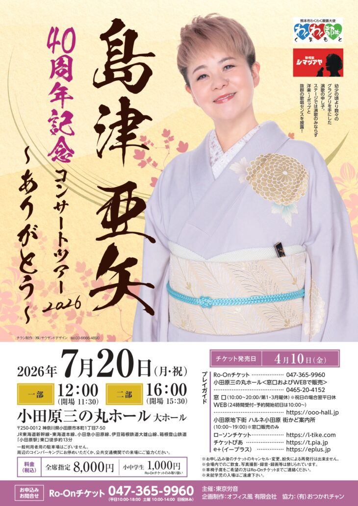 7/20(月・祝) 12:00 / 16:00 開演(各回30分前 開場)小田原三の丸ホール 大ホール料金(税込)全席指定 : 8,000円