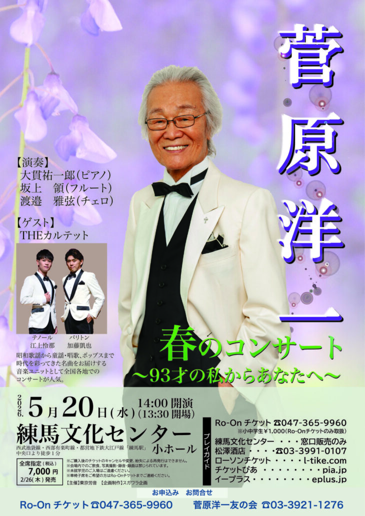 5/20(水) 14:00 開演(13:30 開場)練馬文化センター 小ホール料金(税込)全席指定 : 7,000円
